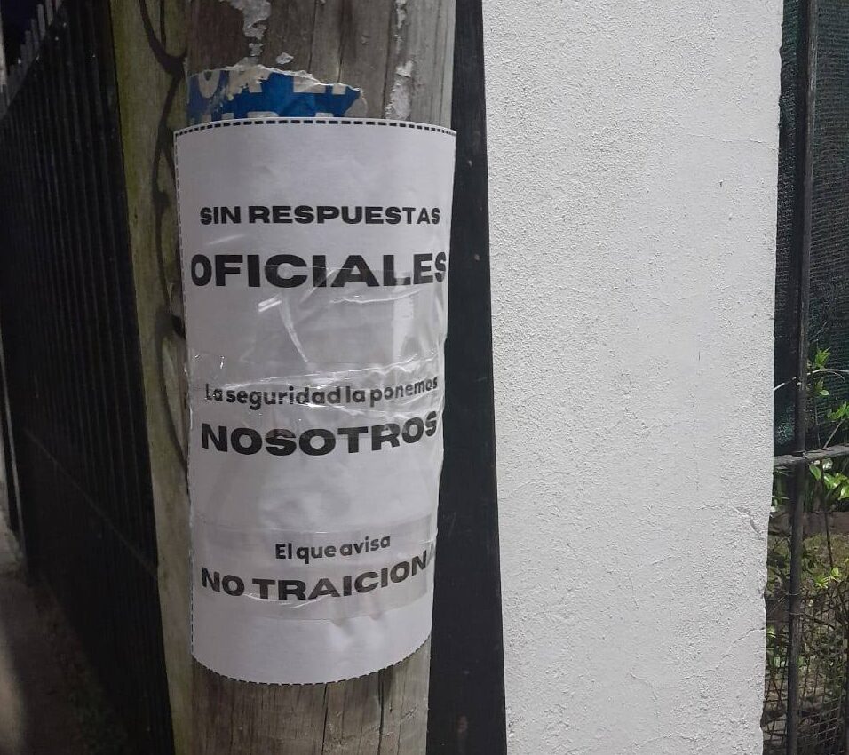 “Estamos en alerta contra la delincuencia”, “Nosotros nos cuidamos entre vecinos”, “Basta de robos, exigimos seguridad”, “Atención vecinos armados” y “Muchos delincuentes y poca seguridad”, son algunas de las advertencias que colocaron en la zona de 61 y 140.