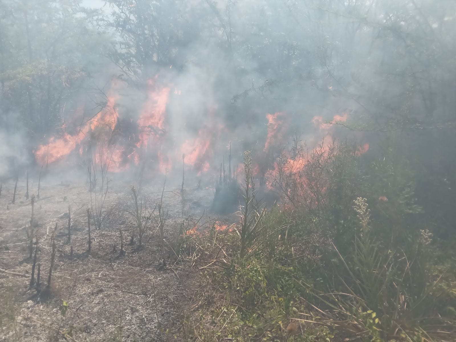 La primera dotación en arribar fue la unidad 3 de Bomberos Voluntarios de Arturo Seguí, a cargo del ayudante Compagnucci, que se encontró con un incendio de interfase que ya comprometía los fondos de al menos cuatro viviendas y se expandía sin control por campos linderos.
