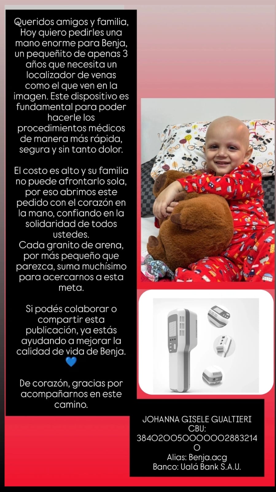 Para colaborar con Benja podes contribuir mediante transferencia:
