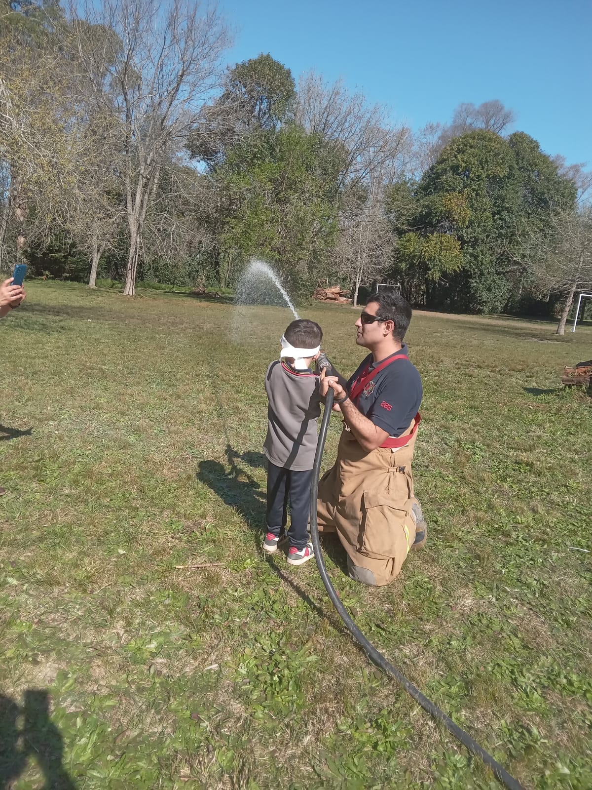 Además, mostraron sus herramientas de trabajo, compartieron detalles sobre los distintos equipos que utilizan y hasta realizaron una demostración arrojando agua con sus mangueras.