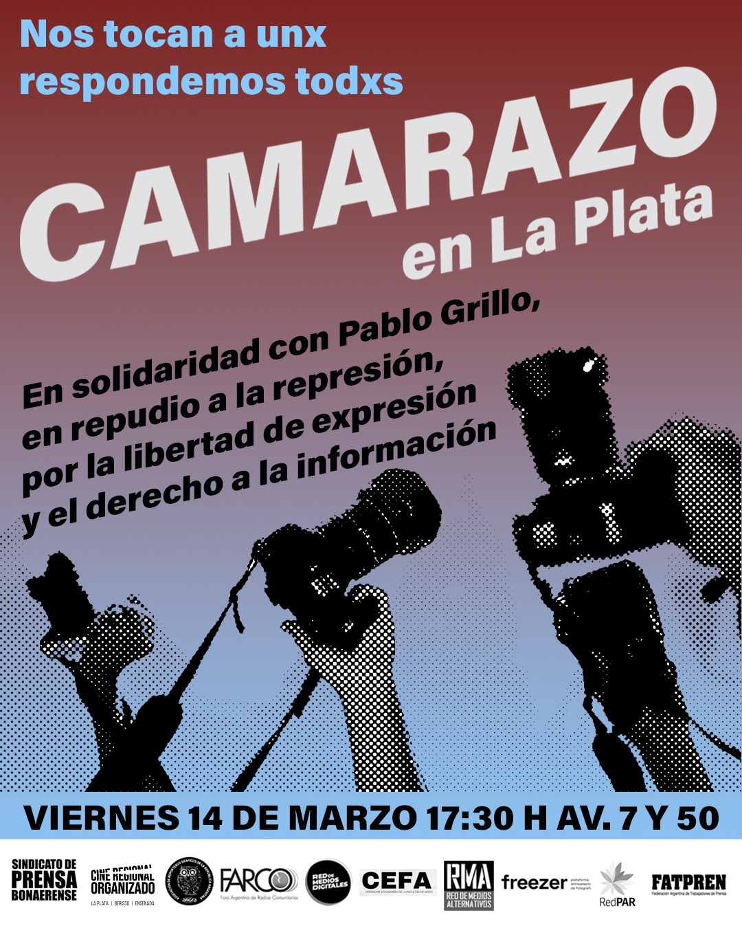 Trabajadores de prensa, reporteros gráficos, cineastas, comunicadores populares y estudiantes de la región convocaron a un “camarazo” en defensa de sus derechos y para repudiar la violenta represión contra miles de jubilados y trabajadores, en la que hirieron gravemente al fotógrafo Pablo Grillo.