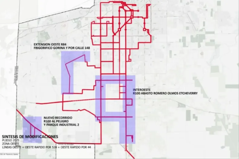 Oeste: será la zona con mayor crecimiento, con nuevos recorridos en El Peligro, Abasto y el Parque Industrial II, y refuerzo de frecuencias en avenidas 44 y 520 (14%).