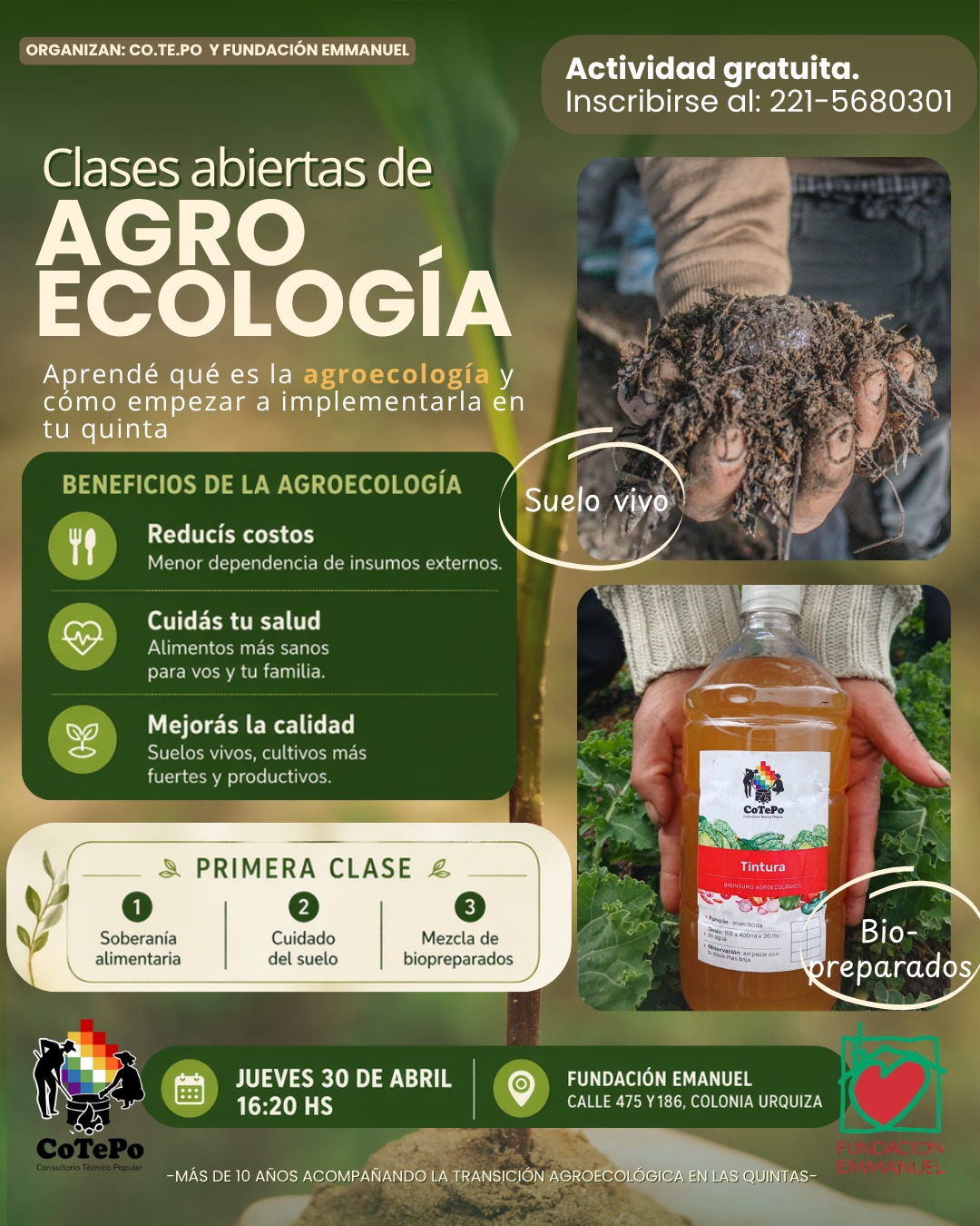 Desde la organización destacaron que la actividad es gratuita, abierta a toda la comunidad y no requiere formación previa, buscando promover el acceso a conocimientos clave para la producción agroecológica.