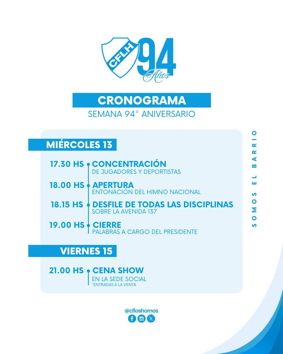 Este miércoles 13/8 habrá un desfile de deportistas del Centro Fomento Los Hornos por la avenida 137, con motivo de su 94º aniversario.