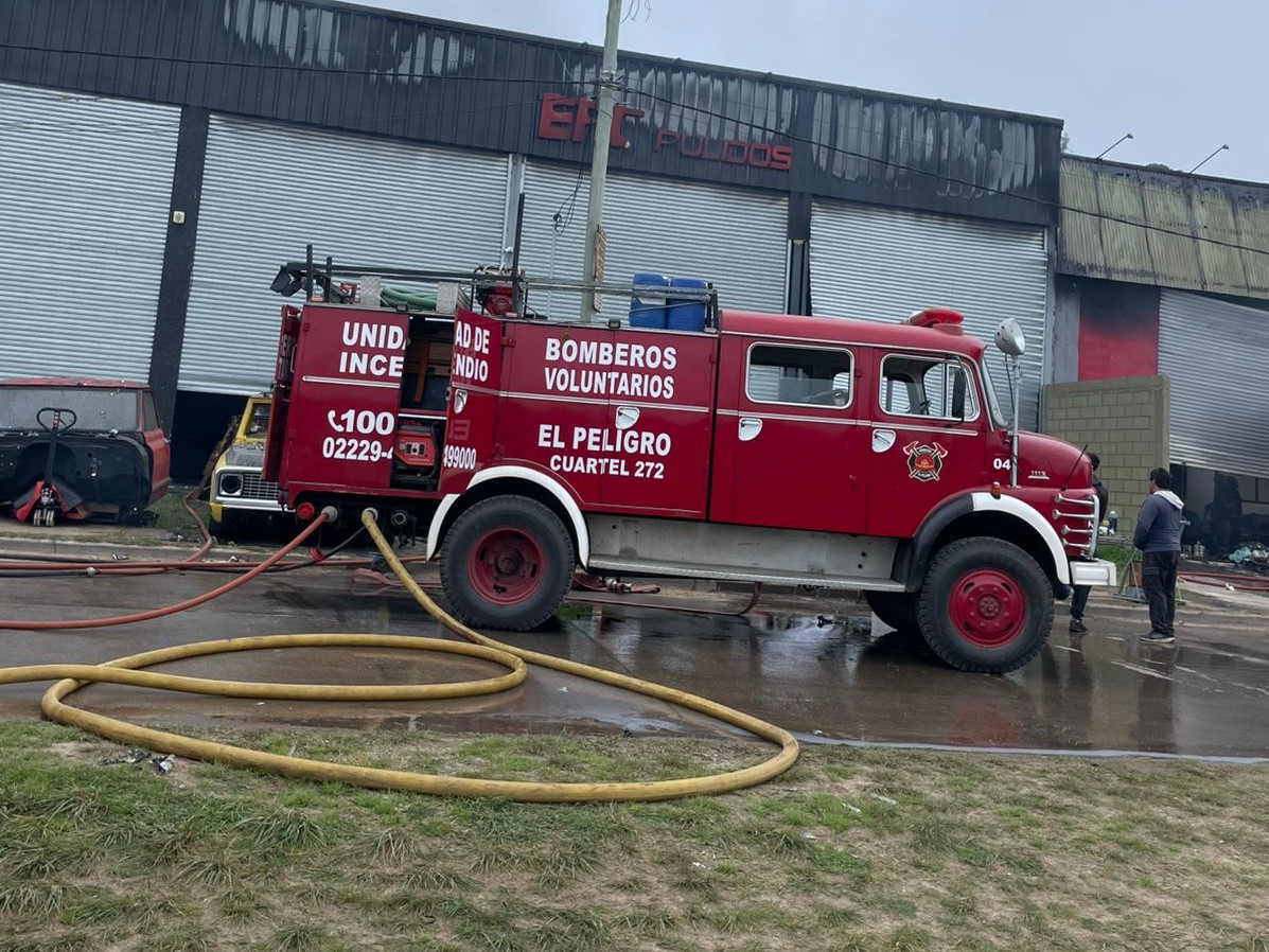 Al llegar al lugar, el personal se abocó a evitar la propagación de las llamas hacia los galpones cercanos, con especial énfasis en proteger el espacio donde funciona la casa de estética vehicular.
