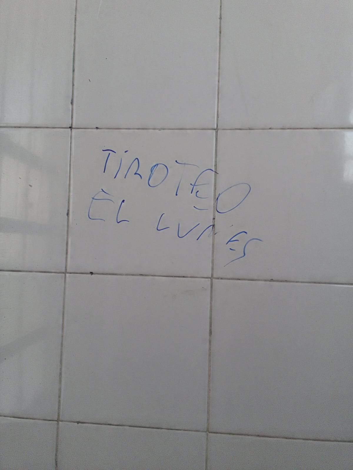 Según denunciaron, la foto en donde se lee “tiroteo el lunes”, fue captada por un estudiante de primer año entre las 9:20 y las 11:40, franja en la que los alumnos de secundaria pueden ingresar a los baños debido al funcionamiento compartido del edificio.