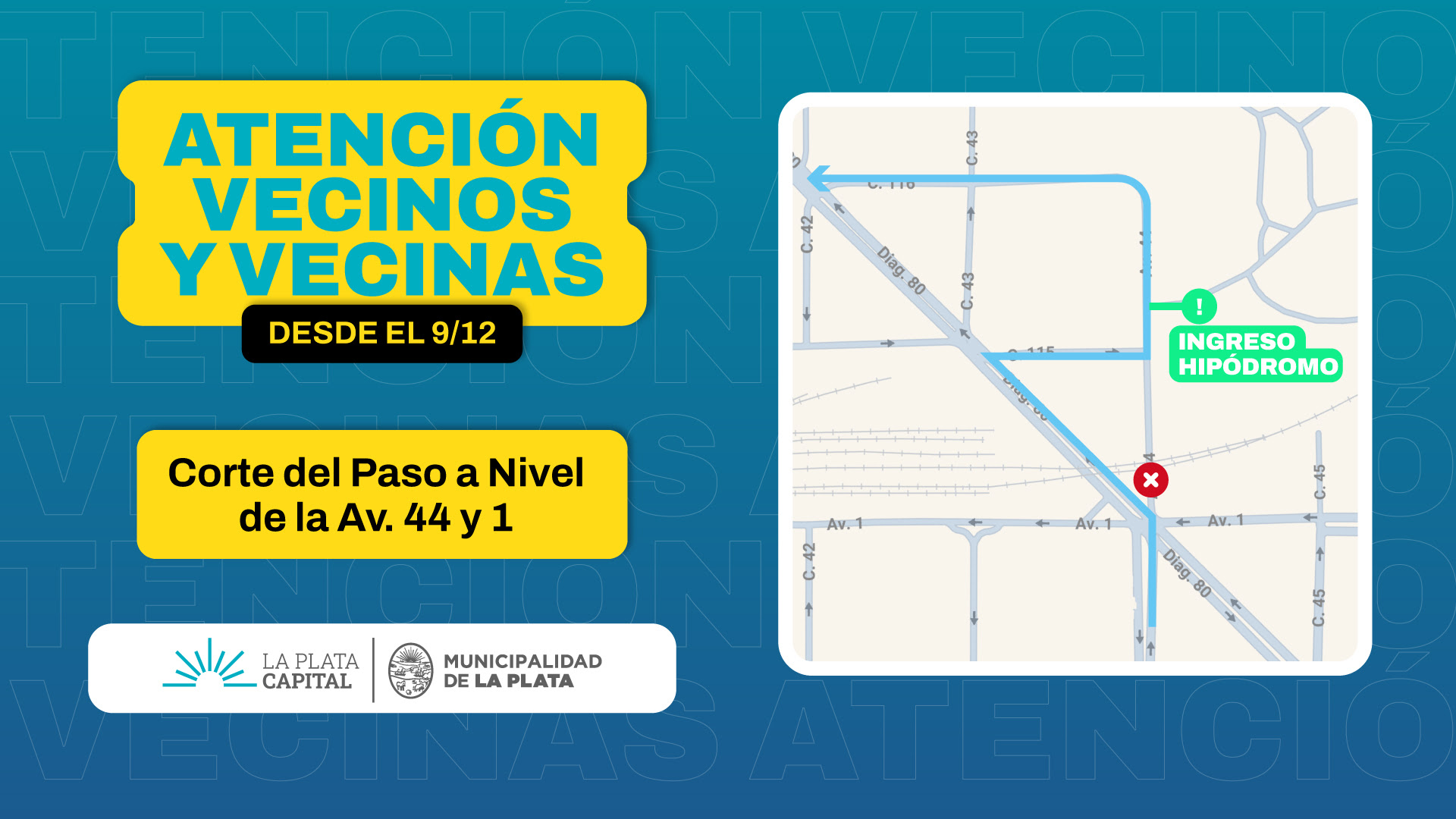 Debido a los trabajos, quienes circulen por avenida 44 en dirección hacia calle 1 deberán tomar de manera obligatoria diagonal 80 para retomar luego su recorrido habitual. En tanto, los automovilistas que transiten por avenida 1 solo podrán doblar a la derecha por diagonal 80. Para llegar al Hipódromo, en ambos sentidos, la vía habilitada será la calle 115.