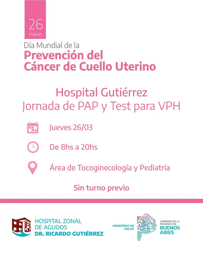 El Hospital Gutiérrez realizará una jornada de PAP y vacunación contra el VPH para prevenir el cáncer de cuello uterino