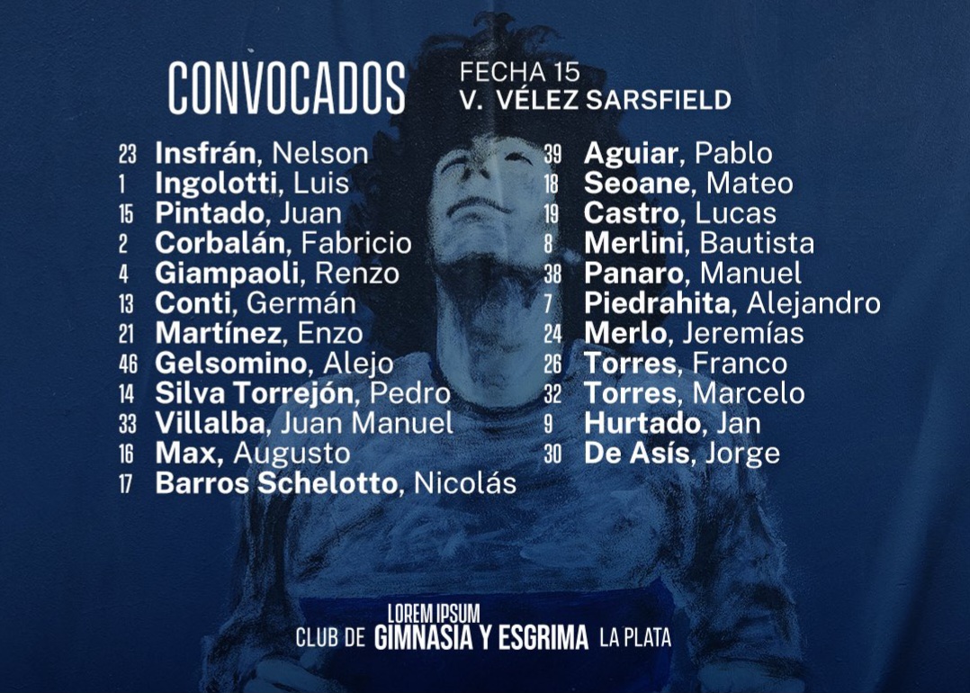Gimnasia: Nelson Insfrán; Juan Pintado, Renzo Giampaoli, Enzo Martínez, Pedro Silva Torrejón; Nicolás Barros Schelotto, Augusto Max; Manuel Panaro, Bautista Merlini, Alejandro Piedrahita; Marcelo Torres. DT: Fernando Zaniratto.