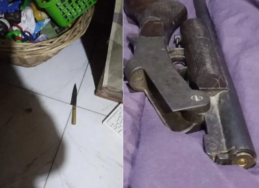 El agresor, identificado como J. L. C., también de 35 años, fue reducido y detenido en el lugar. Durante el procedimiento, los efectivos secuestraron un cuchillo tipo facón que habría sido utilizado en el ataque y una escopeta recortada cargada que se encontraba dentro de la vivienda.