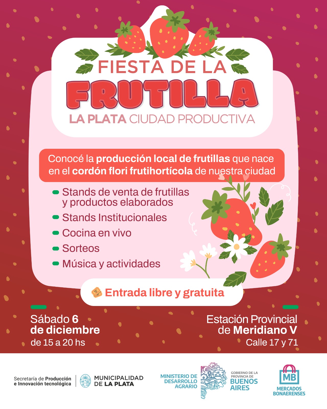 Una nueva edición de La fiesta de la Frutilla se llevará a cabo el sábado 6 de diciembre, de 15 a 20 hs, en la Estación Provincial de Meridiano V (calle 17 y 71), con entrada libre y gratuita.