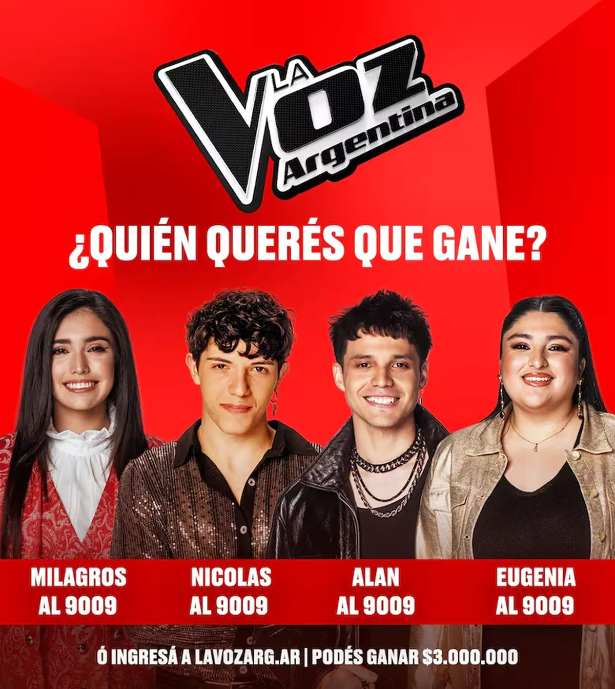 Los cuatro finalistas deberán dar las performances de su vida para cautivar a la audiencia en la gala que definirá al ganador de La Voz Argentina, quien no solo obtendrá la consagración artística, sino también un gran premio: 70 millones de pesos, un Volkswagen Tera 0 km y un contrato con Universal Music.