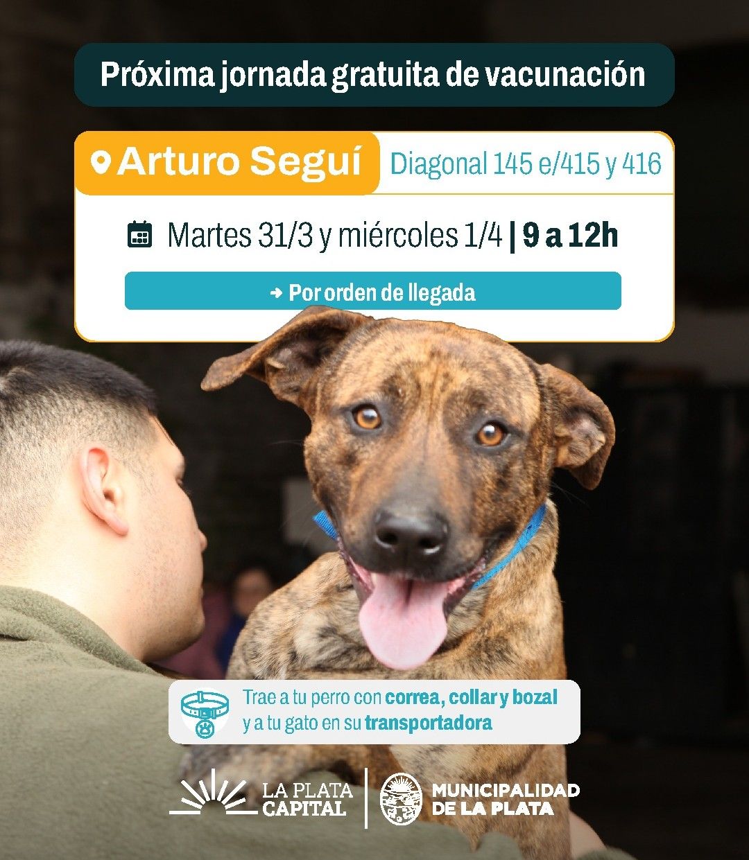 El operativo de vacunación antirrábica se llevará a cabo en Diagonal 145 entre 415 y 416, los días martes 31 de marzo y miércoles 1 de abril, en el horario de 9 a 12hs. Según informaron, la atención será por orden de llegada.
