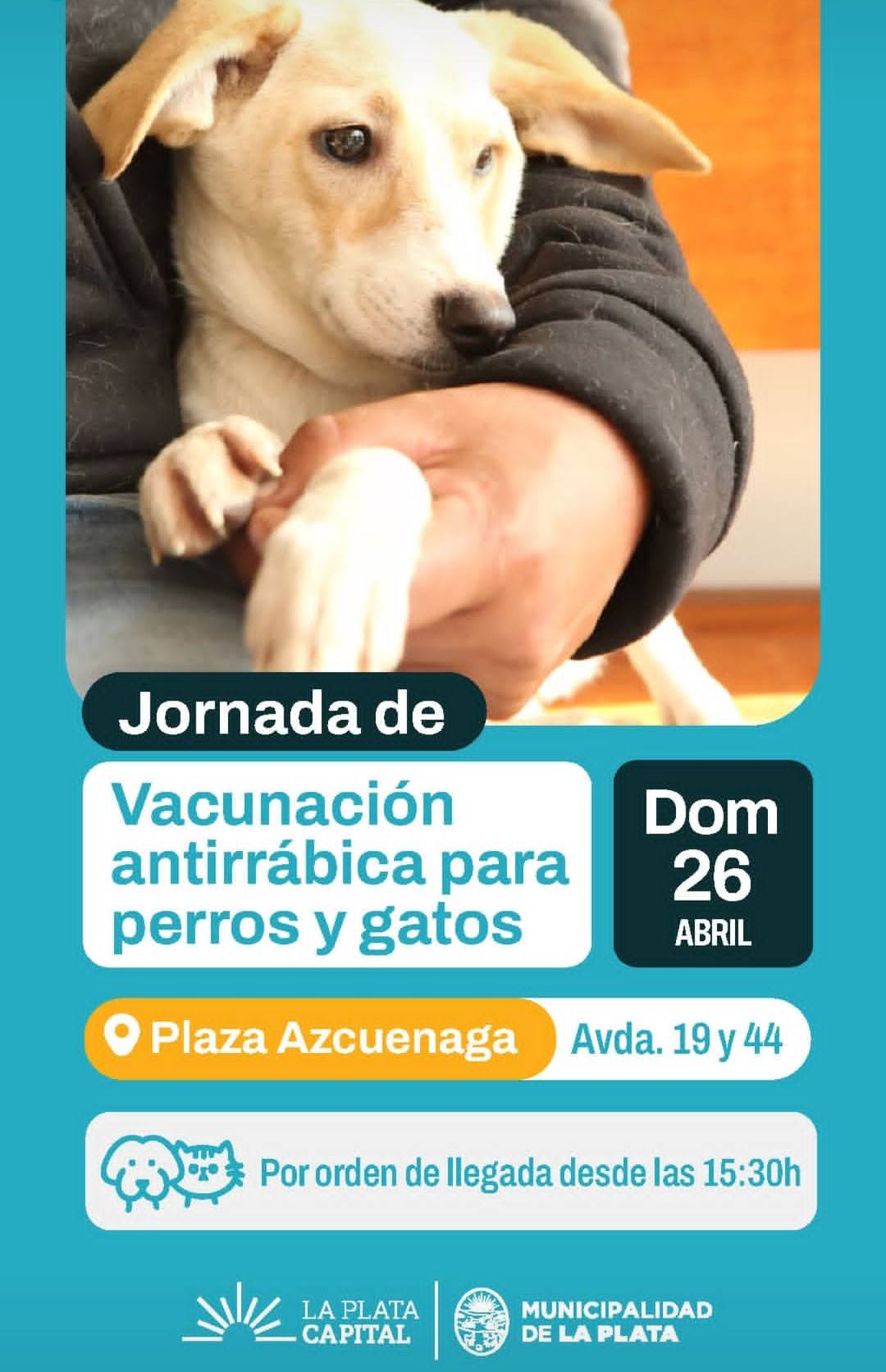 Mientras que el domingo 26 de abril se realizará una nueva jornada en Plaza Azcuénaga ubicada en Av. 19 y 44, donde también se llevará adelante la aplicación de vacunas antirrábicas para perros y gatos desde las 15:30hs, por orden de llegada.