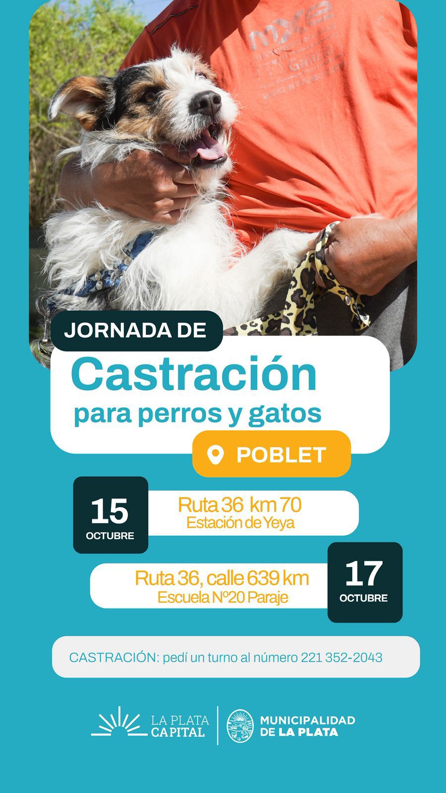 La iniciativa busca promover la tenencia responsable de mascotas y contribuir al control poblacional de animales en la zona. Según se informó, en esta oportunidad habrá 50 turnos para hembras y 50 para machos, y las castraciones serán exclusivamente para animales de Poblet.