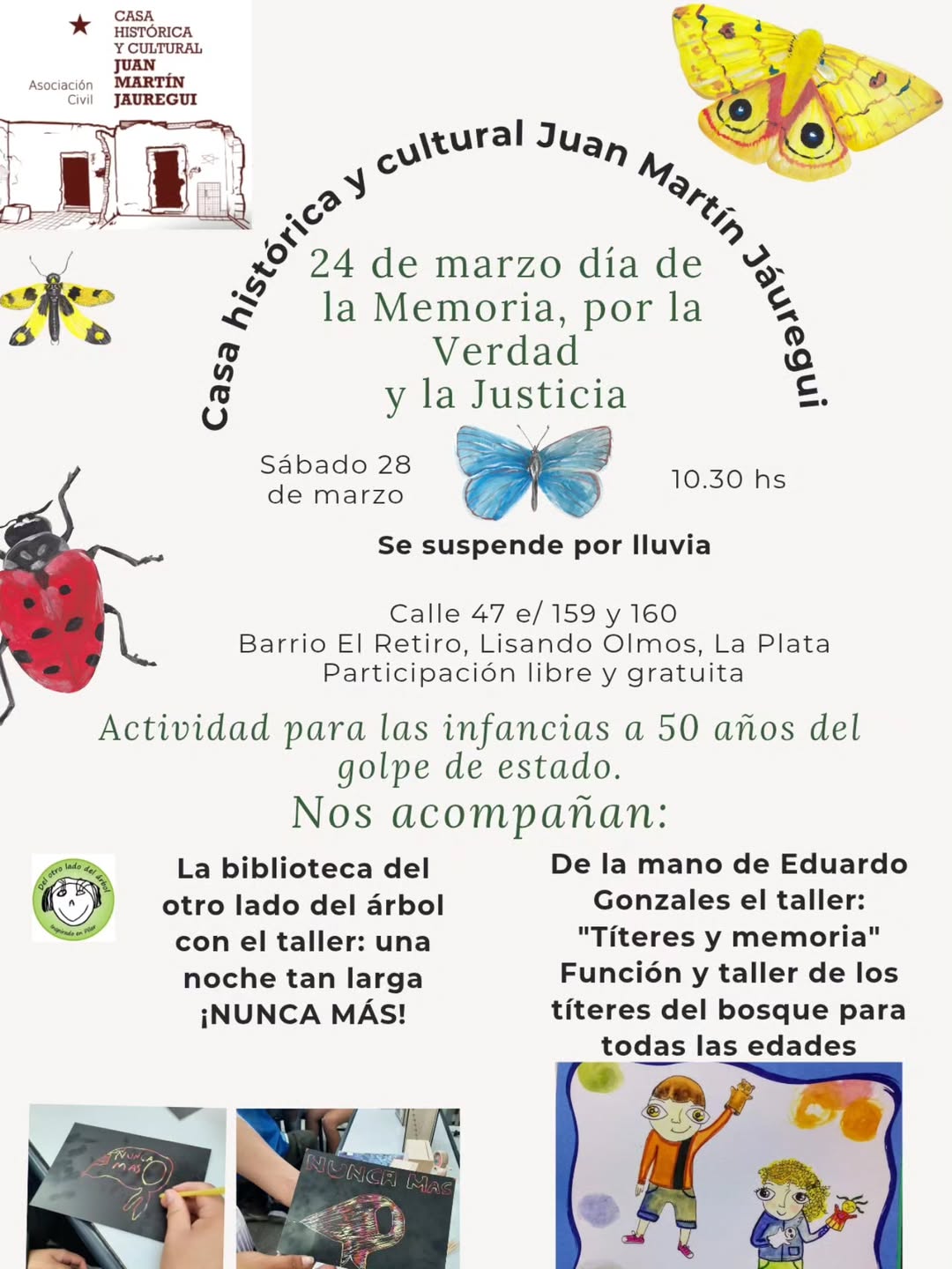 La Casa Histórica y Cultural Juan Martín Jáuregui convocó a la comunidad a participar de una jornada especial en el marco del Día de la Memoria por la Verdad y la Justicia, a 50 años del golpe de Estado de 1976.