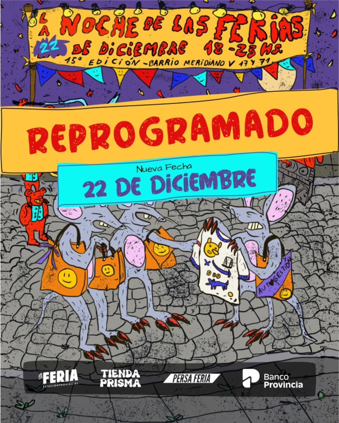 Reprogramaron la 15° edición de La Noche de las Ferias en Meridiano V, debido al pronóstico de lluvias
